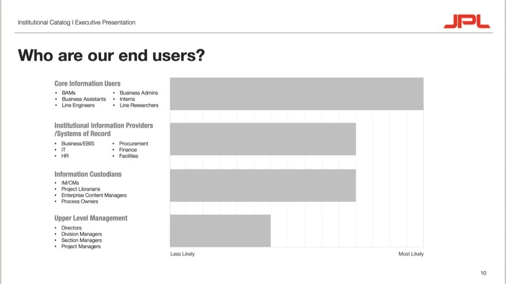After spending a whole week talking to the engineers, business admins, and scientists responsible for JPLs missions, I began to get a better sense for what our end users experience was, their frustrations, their needs, and how they differed between user types.