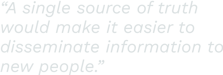 After a few 1:1 stakeholder interviews and group meetings, we started to gain an understanding of the challenges our clients were facing, we heard: