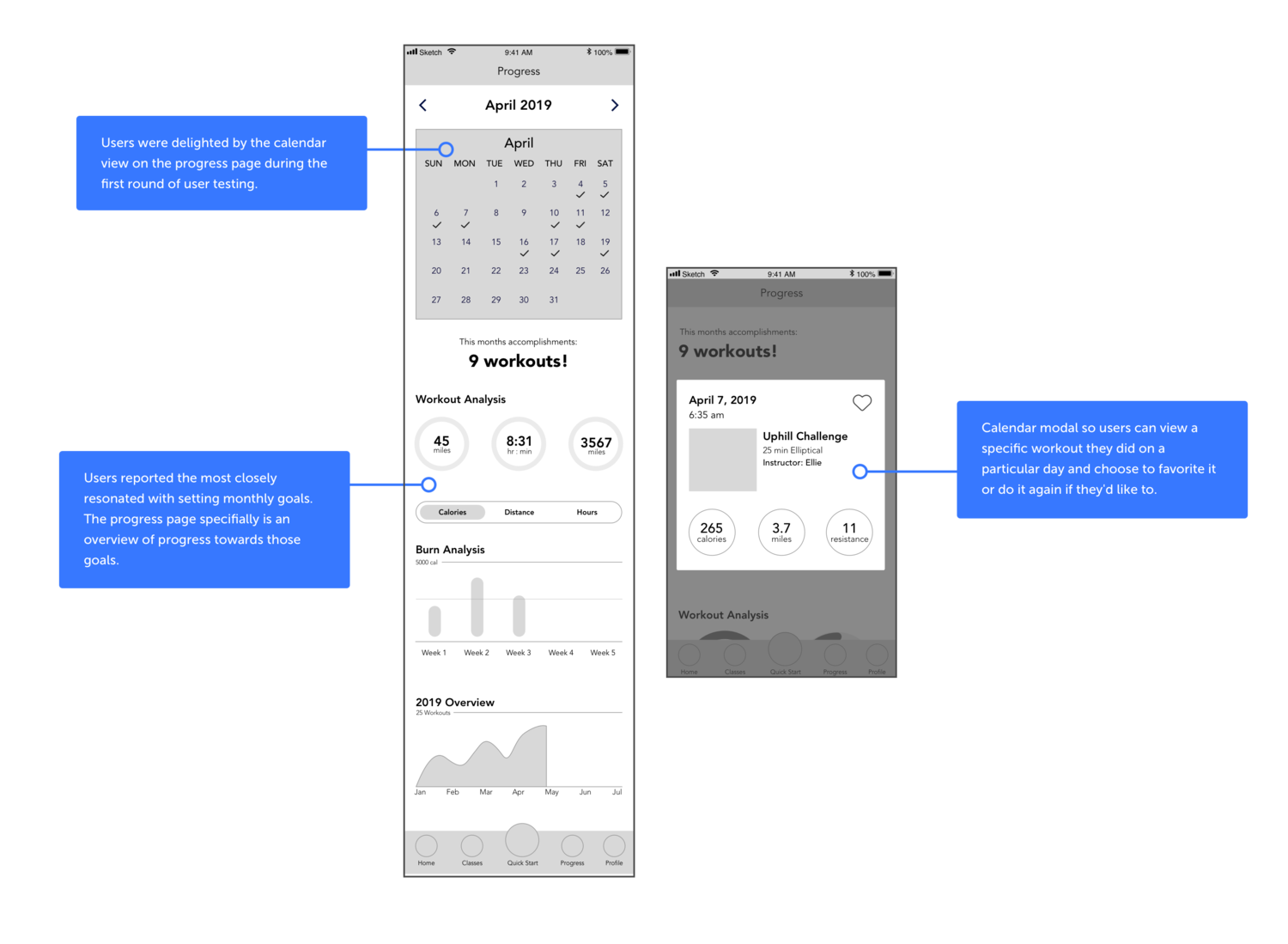 Users were excited to see their progress laid out in this graph and were clear on how to switch views. Some users reported they would like to be able to set which metrics are shown first if calories burned doesn’t hold as much meaning for their goals.