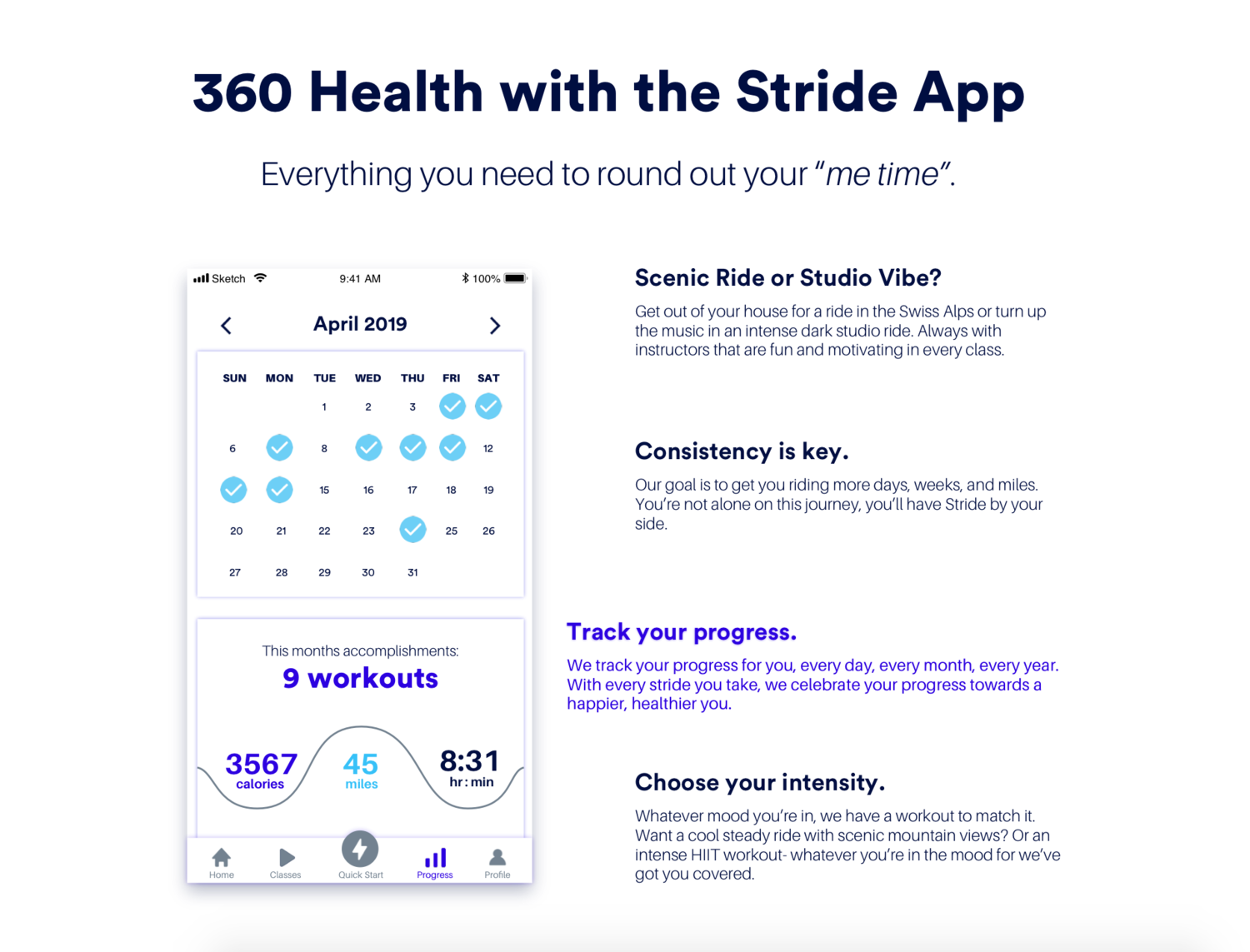 I wanted to take the foundation of what the former team did well, and expand on it in a way that incorporated the idea of consistency and making progress and engage with our users in a way that makes them feel like they are working with Stride 360 to achieve their goals.